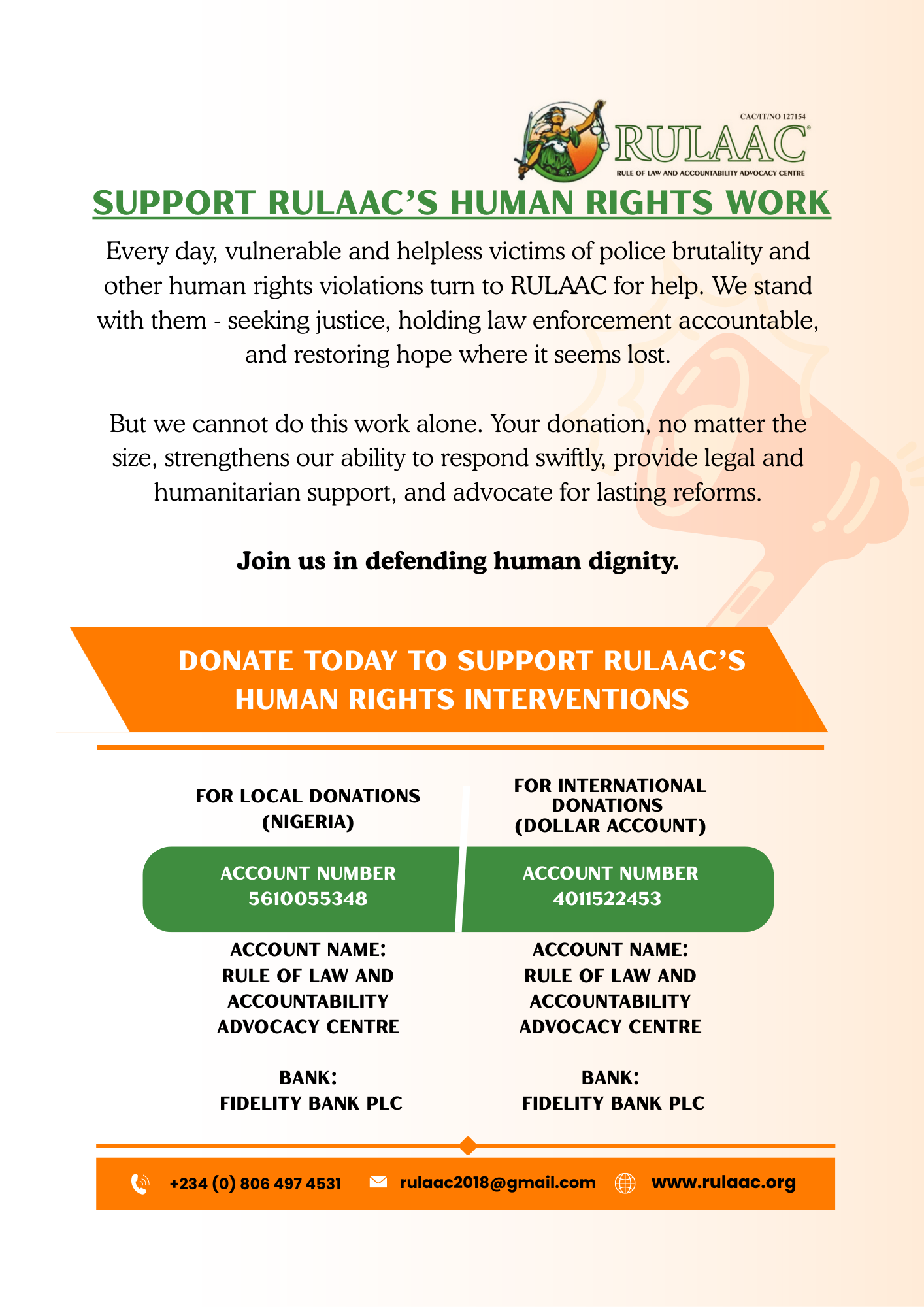 The Rule of Law and Accountability Advocacy Centre (RULAAC) has formally petitioned the Commissioner of Police in Imo State, demanding the immediate release of Miss Nmesoma Chukwunyere, a 21-year-old trainee nurse...